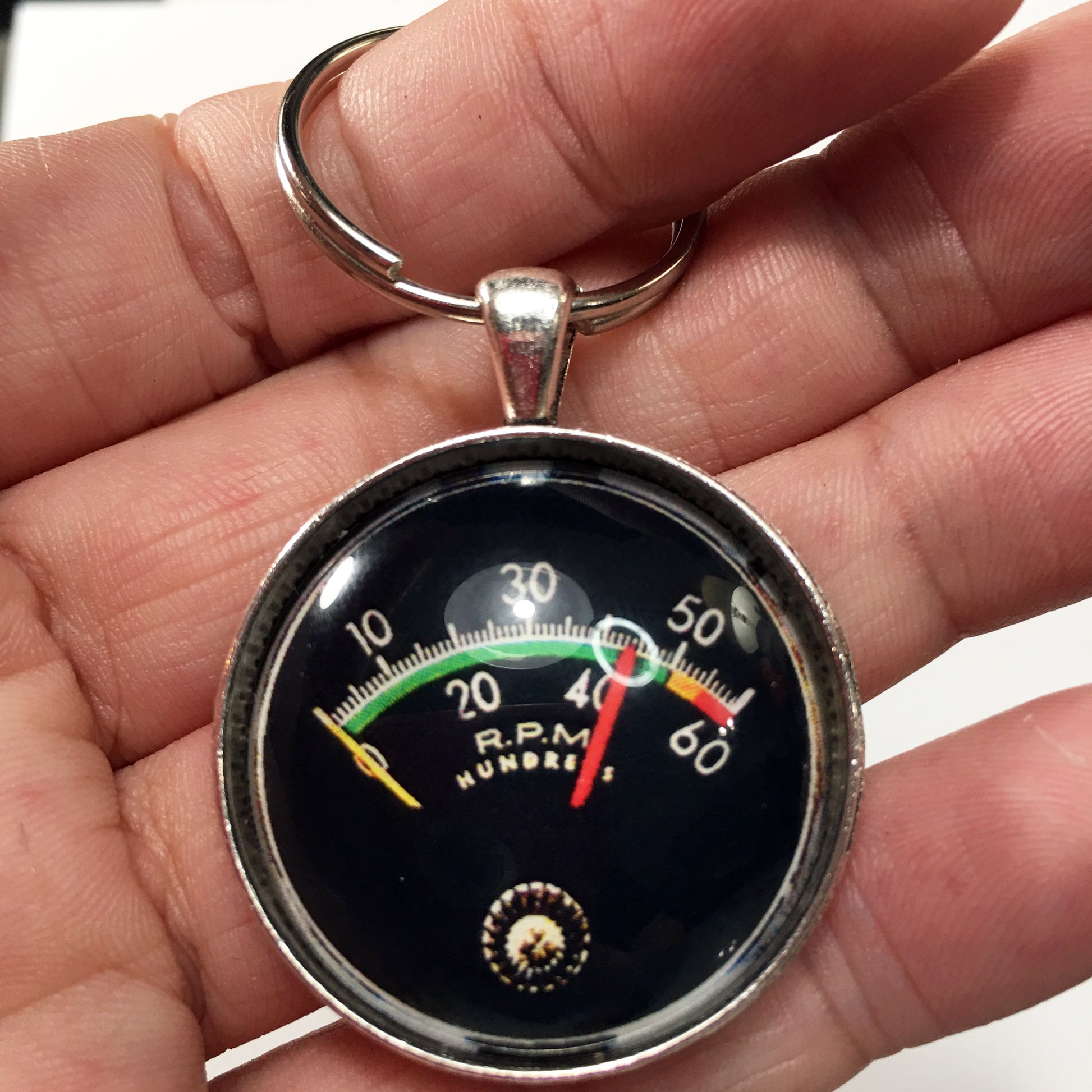 Vintage Chevy 60 RPM Gauge Kneeknocker 1.2" Diameter Keychain
