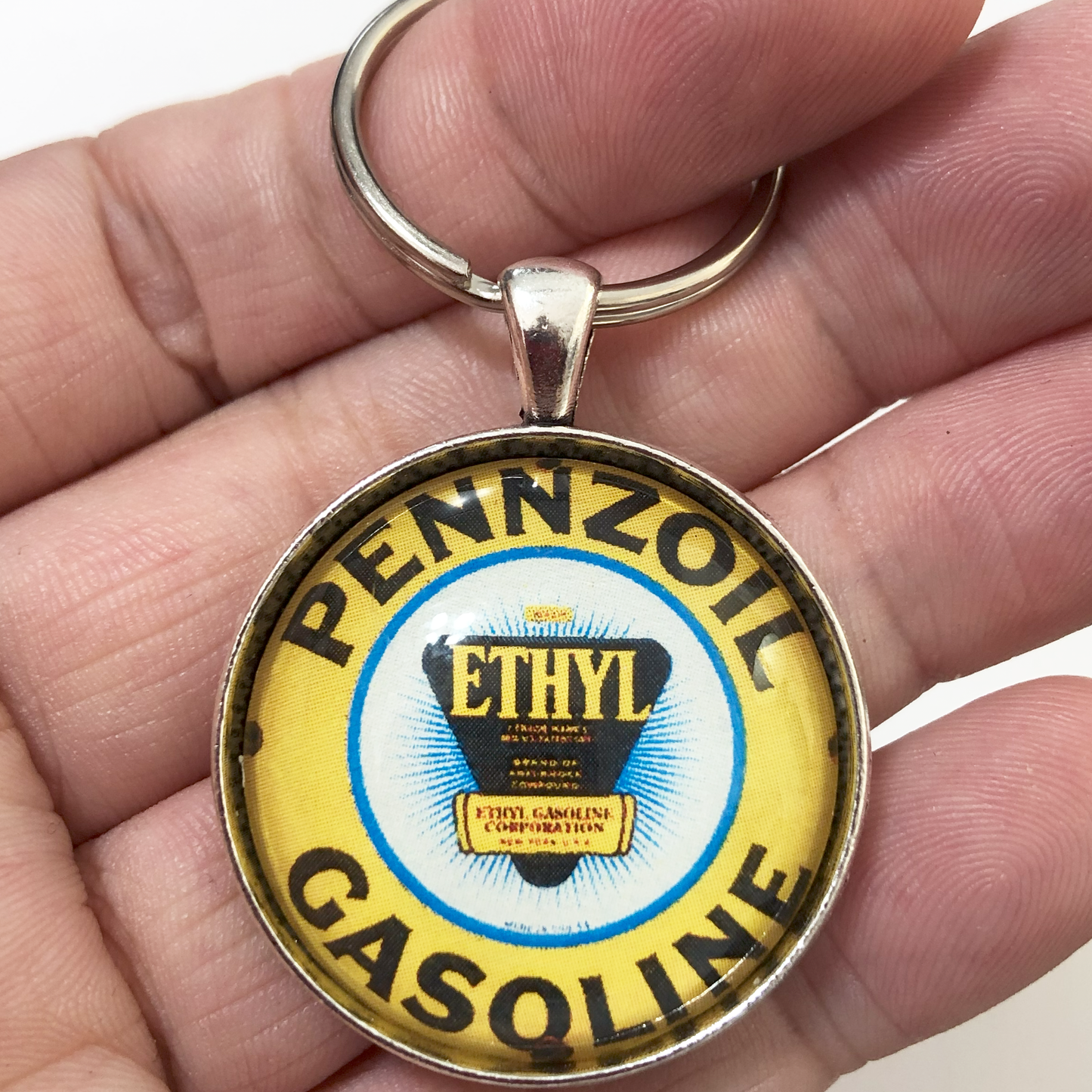 Vintage Pennzoil Ethyl Gasoline Sign 1.2" Keychain